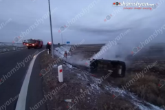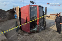 Եղվարդ-Զովունի ավտոճանապարհին ավազով բարձված «KamAZ»-ը կոտրել է գազախողովակներն ...