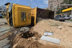 Խոշոր վթար՝ Երևանում. բախվել են հող տեղափոխող բեռնատարն ու «Mazda», «Mercedes» և...