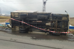Արթիկ-Պեմզաշեն ավտոճանապարհին բեռնատար է կողաշրջվել (լուսանկարներ)