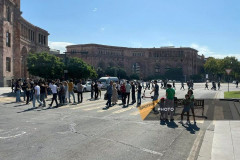 Ցուցարարները նստարանների և ցուցանակների միջոցով Խանջյան փողոցում ամբողջությամբ դ...