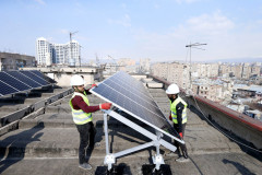 Արևային մարտկոցներ «պանելային» շենքի վրա. Կալինինգրադի Բաղրամյան 18 հասցեում գտն...