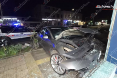 Երևանում «Tesla»-ն բախվել է բազալտե եզրաքարին, հայտնվել մայթին. կա տուժած