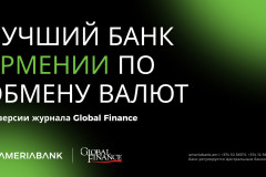 Америабанк назван лучшим банком по обмену валюты в Армении по версии журнала Glo...