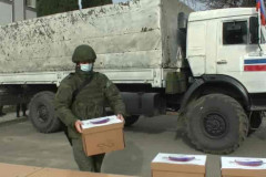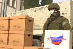 Ռուս խաղաղապահներն առաջին անհրաժեշտության պարագաներից ու սննդամթերքից բաղկացած հ...