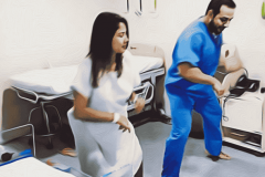 Բժիշկը պարում է իր մոտ հերթագրված հղի կանանց մոտ, որպեսզի թեթևացնի ծննդաբերությա...