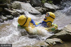 Մինյոնների կոստյումներով չինացի զբոսաշրջիկները` լեռնային գետում զվարճանալիս