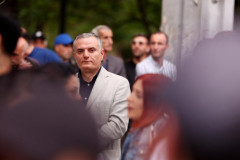 Մայր Աթոռի բակը բազմամարդ է. մի կողմում Վեհափառի աջակիցներն են, մյուսում՝ նրա հեռացումը պահանջողները