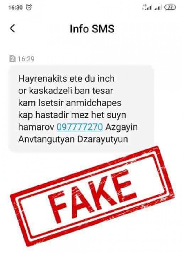 Ուշադրության կենտրոնում❗️❗️❗️Հարգելի քաղաքացիներ, Արցախի Ազգային անվտանգության ծառայությունը նման հաղորդագրություն չի տարածել։ Այս անգամ ևս գործ ունենք ադրբեջանական քարոզչության հերթական սադրանքի հետ։ Արցախի ԱԱԾ-ի հետ կապ հաստատելու համար հարկավոր է զանգահարել պաշտոնական կայքում տեղադրված հեռ. համարով՝ (047)94 41 26