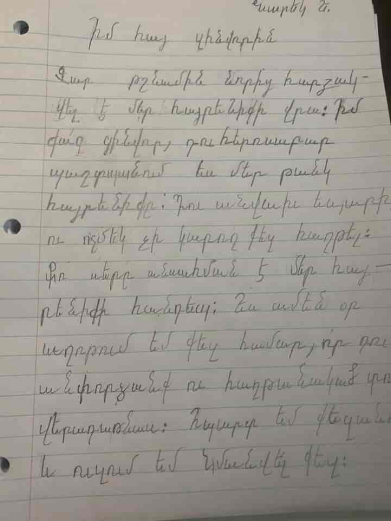 Նամակներ հայ մանուկներից․Արծրուն Հովհաննիսյան