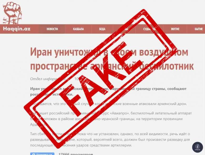 Ուշադրության կենտրոնումԱդրբեջանական լրատվամիջոցներն այսօր տարածել էին տեղեկատվություն, թե Իրանը ոչնչացրել է հայկական անօդաչու թռչող սարք, որը հատել էր հայ-իրանական սահմանը։ Տեղեկատվությունը հաստատող որևէ ապացույց չէր ներկայացվում։