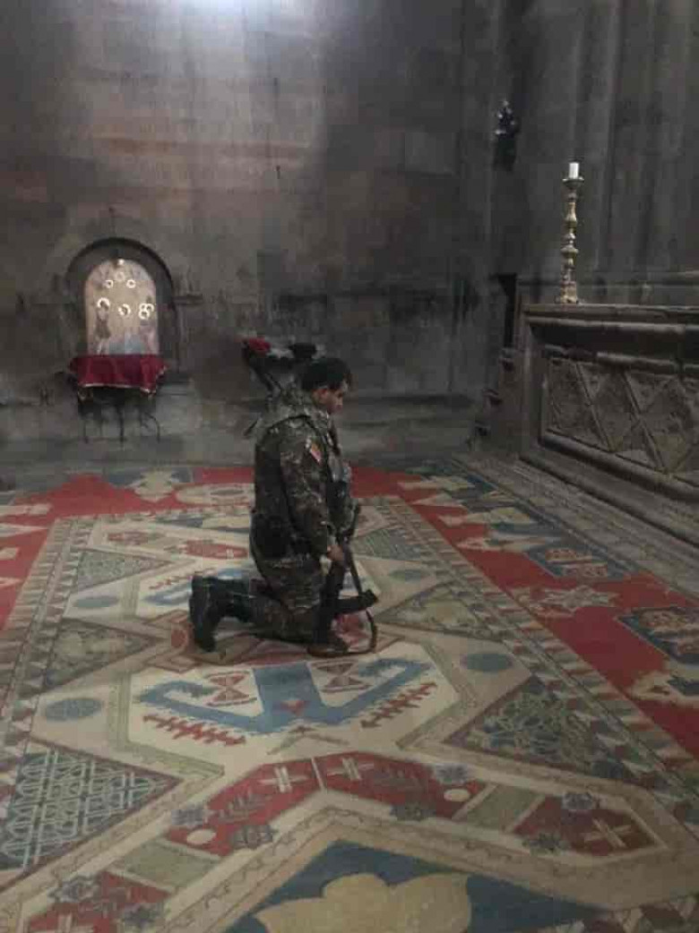 Արցախի Գանձասար եկեղեցում զինվորն աղոթում է մարտի մեկնելուց առաջ Ուշադրության կենտրոնում 21 Հոկտեմբեր, 2020 14:29 Կիսվել Լուսանկարը՝ ԵՊԲՀ ռեկտոր Արմեն Մուրադյանի ֆեյսբուքյան էջից։ Կիսվել