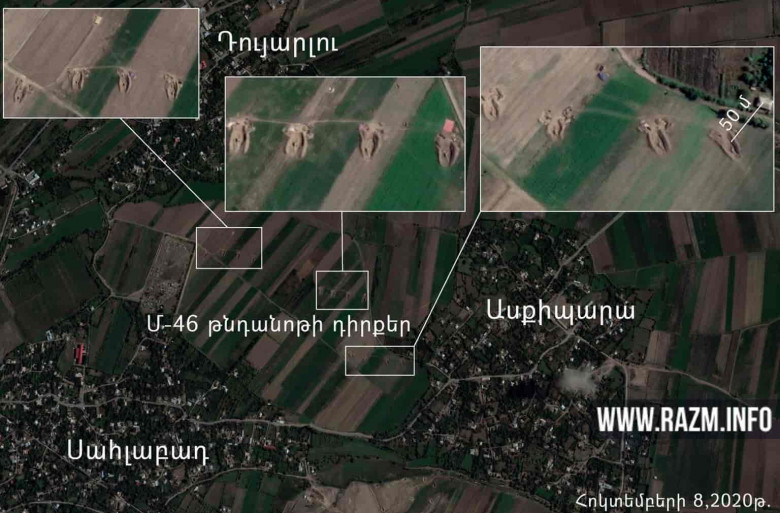 «Հոկտեբերի 8-ին արված արբանյակային լուսանկարում Ադրբեջանի Թարթառի շրջանի Ասքիպարա, Սահլաբադ և Դույարլու գյուղերն են, իսկ դրանց մեջտեղում 130մմ տրամաչափի Մ-46 թնդանոթի 3 մարտկոցի դիրք, ընդ որում դիրքերը փորվել են համեմատաբար վերջին ժամանակաշրջանում: Հրետանային մարտկոցներից մեկը Ասքիպարա գյուղի տներից մեկից տեղակայված է ընդամենը շուրջ 50մ հեռավորության վրա: