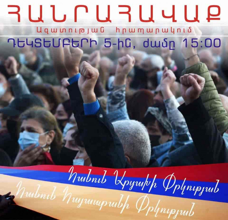 Դեկտեմբերի 5-ին՝ ժամը 15:00-ին, Ազատության հրապարակում հրավիրվում է համապետական հանրահավաք