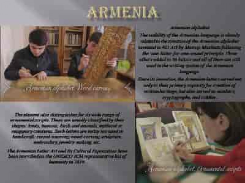 Նշենք, որ 2019 թ. «Հայկական տառարվեստը և դրա մշակութային դրսևորումները» մշակութային արժեքը գրանցվել է ՅՈՒՆԵՍԿՕ-ի մարդկության ոչ նյութական մշակութային ժառանգության ներկայացուցչական ցանկում։