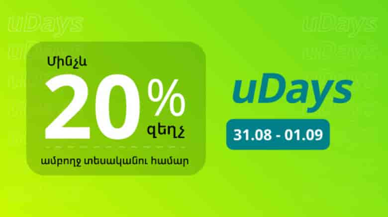 ՀասարակությունՄիայն երկու օր՝ օգոստոսի 31-ին և սեպտեմբերի 1-ին, «uDays» հատուկ առաջարկի շրջանակներում Ucom-ի վաճառքի և սպասարկման կենտրոններում, ինչպես նաև Ucom-ի առցանց խանութում յուրաքանչյուրը կարող է ստանալ մինչև 20% զեղչ սմարթֆոնների և 15%՝ աքսեսուարների ողջ տեսականին գնելու դեպքում: