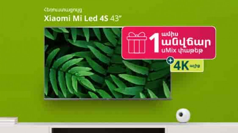 ՀասարակությունԱյսուհետ Ucom-ի առցանց խանութում նոր բաժանորդները կարող են ձեռք բերել Xiaomi Mi Led 4s կամ Xiaomi Mi TV P1 հեռուստացույցներից մեկը և ստանալ 1 ամիս անվճար uMix փաթեթից օգտվելու և 4K ալիք դիտելու հնարավորություն: Իսկ Ucom TV առկա բաժանորդները կստանան 10% զեղչ, ինչպես նաև 4K որակի «Love Nature» հեռուաստաալիքը 1 ամիս անվճար վայելելու հնարավորություն: