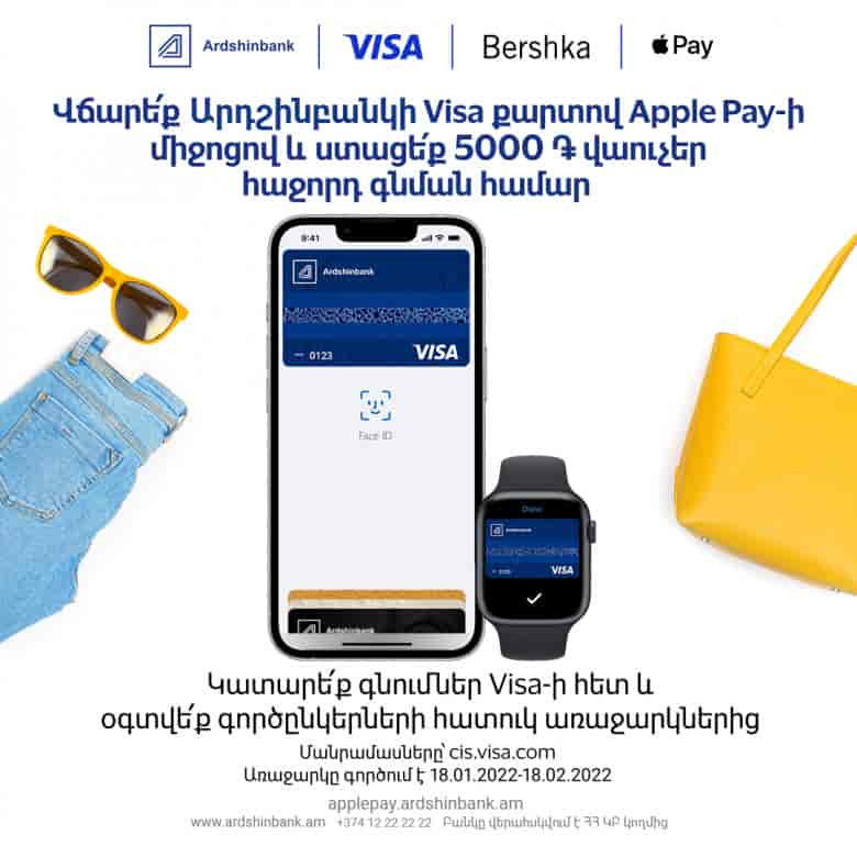 ՀասարակությունՎճարե՛ք Արդշինբանկի Ձեր Visa քարտով Apple Pay-ով և ստացե՛ք 5000 դրամի համարժեք վաուչեր հաջորդ գնման համար հետևյալ խանութներում.