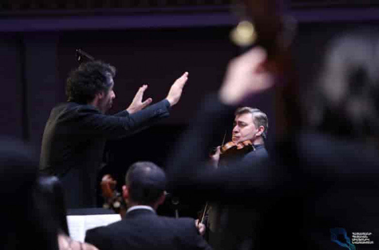 Համերգային ծրագրում հնչեցին Կլոդ Դեբյուսիի «Ֆավնի հետկեսօրյա հանգիստը» պրելյուդը, Մորիս Ռավելի «Պավան հանգուցյալ արքայադստեր համար» ստեղծագործությունը, Ջակոմո Պուչչինիի Սիմֆոնիկ պրելյուդը։ Հայաստանի պետական սիմֆոնիկ նվագախմբի հետ և Սերգեյ Սմբատյանի ղեկավարությամբ ելույթ ունեցավ նաև Վահրամ Սարաջյանի մտերիմ բարեկամ Մաքսիմ Վենգերովը՝ կատարելով Ֆելիքս Մենդելսոնի Ջութակի կոնցերտը։