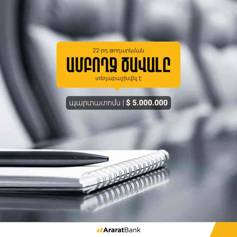 Ուշադրության կենտրոնումՍույն թվականի ապրիլի 21-ին ԱՐԱՐԱՏԲԱՆԿ բաց բաժնետիրական ընկերության կողմից թողարկված դոլարային պարտատոմսերն ամբողջությամբ տեղաբաշխվել են։