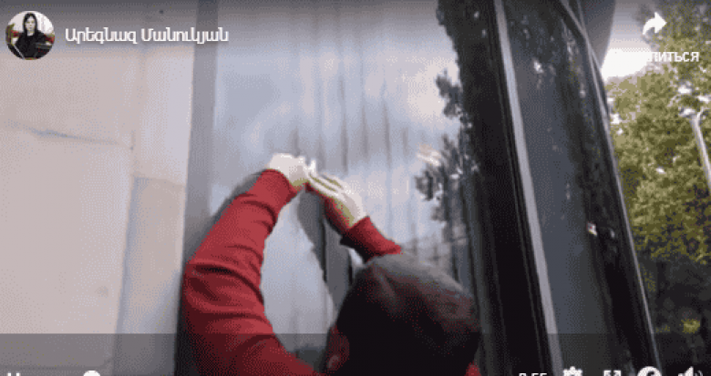 Պատգամավոր Արեգնազ Մանուկյանը ֆեյսբուքյան իր էջում գրում է. ԱԳՆ-ի շենքի պատուհաններին արժանապատիվ քաղաքացիներն Արցախի դրոշը փակցրեցին և Արցախ գրեցին