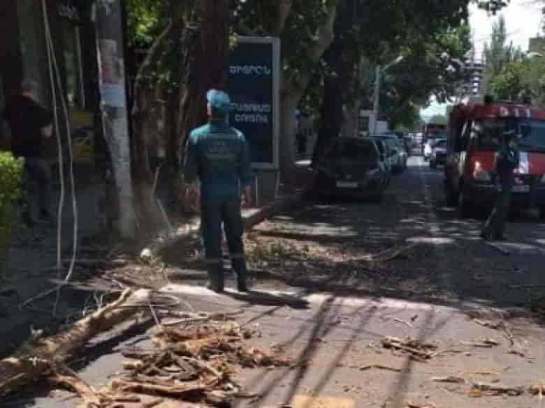 Պարզվել է, որ ծառի ճյուղը կոտրվել է, կախվել էլեկտրալարերից և մասամբ ընկել կայանած «Peugeot» և «Toyota Camry» մակնիշների ավտոմեքենաների վրա․ տուժածներ չկան։