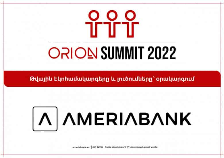 Կարևորելով Orion Summit-ի դերը հայաստանյան էկոհամակարգերի ստեղծման ու զարգացման գործում` Հայաստանի առաջատար ֆինանսական-տեխնոլոգիական կառույցը` Ամերիաբանկը, որպես Platinium հովանավոր միանում է Orion Summit 2022-ին` համատեղելու ջանքերը թվային էկոհամակարգերի դերն ու նշանակությունը ներկայացնելու համար։
