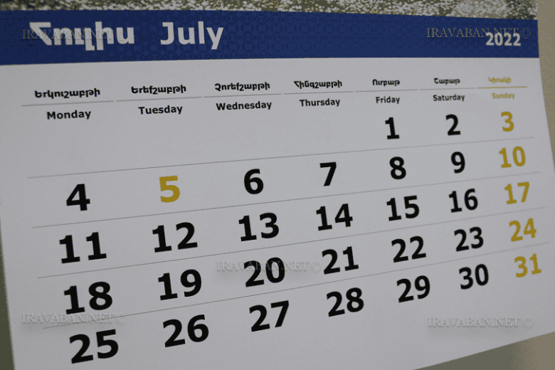 Ուշադրության կենտրոնում«Հայաստանի Հանրապետության տոների և հիշատակի օրերի մասին» օրենքի 11-րդ հոդվածի համաձայն՝ Սահմանադրության օր՝ նշվում է հուլիսի 5-ին։ Նույն օրը նշվում է նաև որպես պետական խորհրդանիշների օր: Այն ոչ աշխատանքային օր է: