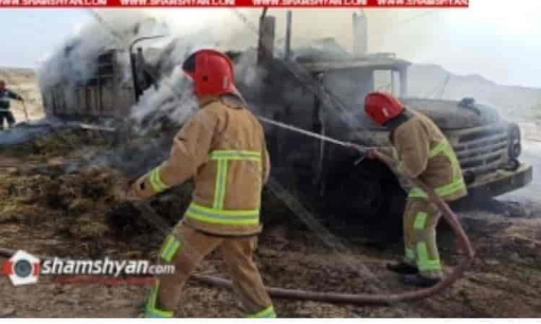 Հրշեջնեը քաղաքացիների օգնությամբ մարել են անասնակերով բարձված ZIL մակնիշի ավտոմեքենայուոմ առաջացած հրդեհը, սակայն ավտոմեքենան ամբողջովին դարձել ոչ շահագործելի, անասնակերն էլ ամբողջությամբ այրվել է։