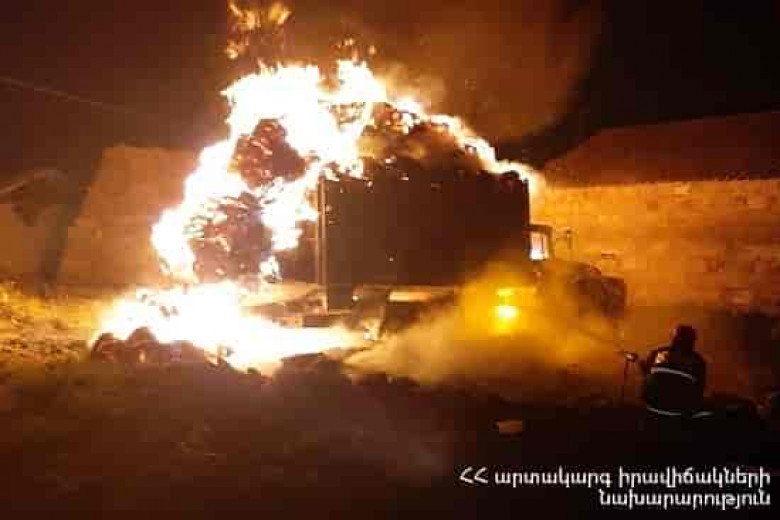 Հրդեհը մեկուսացվել է ժամը 21:55-ին, մարվել՝ 23:49-ին: Այրվել են ավտոմեքենան և վերջինիս թափքում կուտակած մոտ 160 հակ անասնակեր։