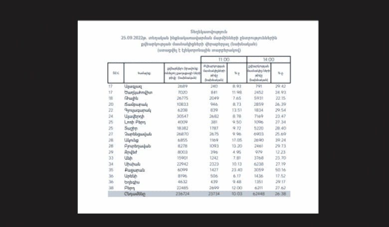 ՏԻՄ ընտրություններին ժամը 14։00-ի դրությամբ մասնակցել է ընտրողների 26.38 տոկոսը. ամենաակտիվ մասնակցությունը Քաջարանում է