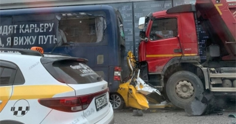 Սարսափելի կադրեր Մոսկվայից։ 1905 թվականի փողոցում բեռնատարը տաքսին մխրճել է ավտոբուսի մեջ: Տաքսու վարորդը և ուղևորը տեղում մահացել են։ Բեռնատարի վարորդը դիմել է փախուստի։