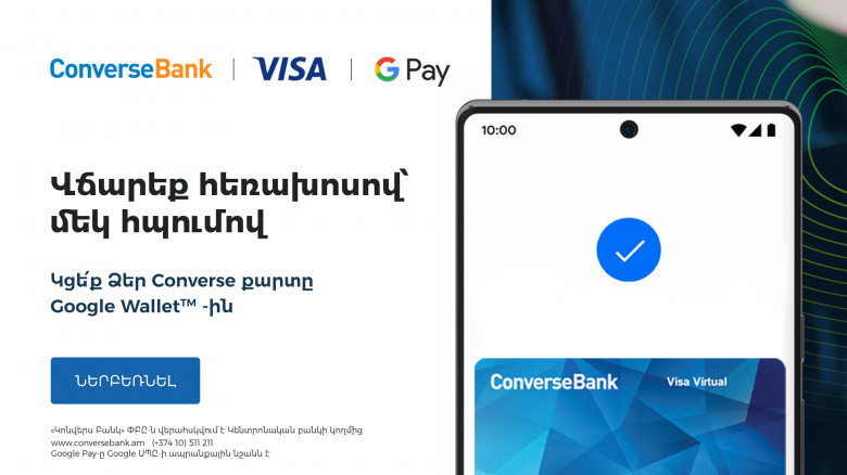 «Կոնվերս Բանկը Google Pay-ի ներդրմամբ ընդլայնում է իր գործիքակազմը և անհպում վճարումների հնարավորություն ընձեռում Հայաստանում հասանելի բոլոր եղանակներով: Google Pay-ով գործարքների անվտանգությունը երաշխավորված է ոչ միայն Կոնվերս Մոբայլ Հավելվածի, այլև այդ համակարգի բազմաստիճան պաշտպանության համակարգի շնորհիվ:»,- ասել են Կոնվերս Բանկում: