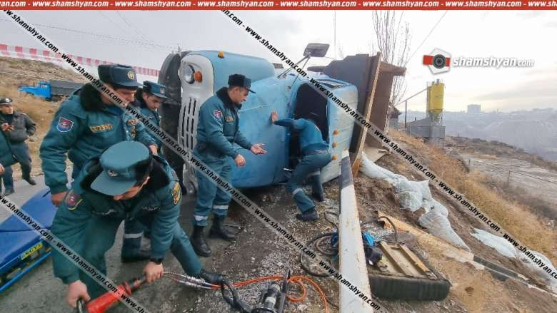 Քանաքեռավանում «ZIL-130»-ը դուրս է եկել երթևեկելի գոտուց, կողաշրջվել․ վարորդը արգելափակվել է խցիկում