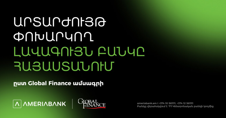 Արտարժույթ փոխարկող լավագույն բանկը Հայաստանում. «Եռակի լավագույն» Ամերիաբանկի նոր մրցանակը