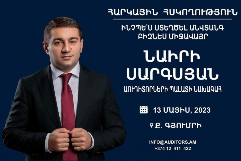 «Աուդիտորների Պալատ»-ի նախագահ Նաիրի Սարգսյանը Գյումրիում հանդես կգա «ՀԱՐԿԱՅԻՆ ՀՍԿՈՂՈՒԹՅՈՒՆ» թեմայով դասախոսությամբ