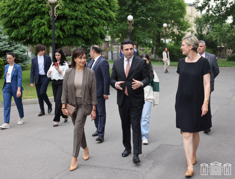 ՀՀ ԱԺ նախագահը հյուրերի հետ շրջայց է իրականացրել խորհրդարանում: Նա պատասխանել է Սիլվանա Կոխ-Մենրինի՝ հայաստանյան կին քաղաքական գործիչների եւ Ազգային ժողովի կողմից նրանց կարողությունների զարգացման ծրագրերին վերաբերող հարցերին: