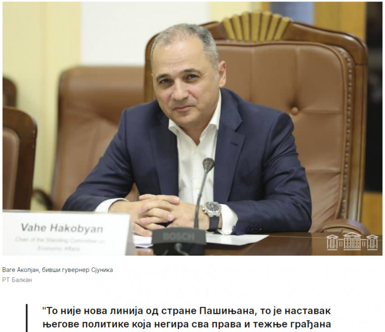 Քաղաքականություն«Վերածնվող Հայաստան» կուսակցության նախագահ Վահե Հակոբյանը պատասխանել է սերբական RT-ի մի շարք հարցերի: Հարցուպատասխանը ներկայացնում ենք ստորև.