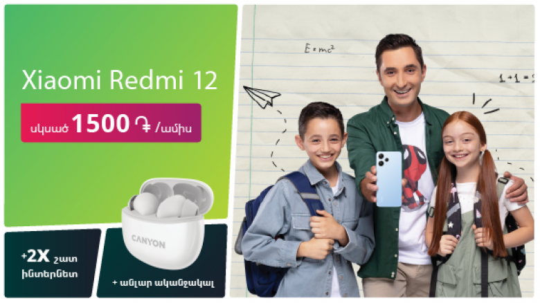 Ucom-ն առաջարկում է ձեռք բերել Xiaomi Redmi 12-ն ամսական 1500 դրամով և ստանալ անլար ականջակալ