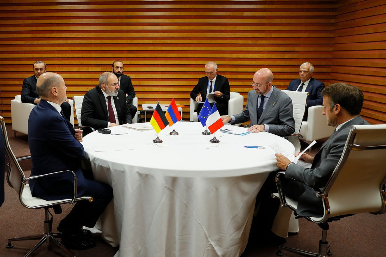 ... Մենք չենք չեղարկել, մեկնում ենք եւ այնտեղ ունենալու ենք հանդիպումներ եւ փորձելու ենք ավելի դետալացված մեր դիրքորոշումները ներկայացնել: Իհարկե, ցավում ենք, որ հանդիպումը տեղի չունեցավ, բայց հույս ունենք, որ հայեցակարգային փաստաթուղթը, որը դրված է սեղանին, հարմար պահի կստորագրվի: Ես պատրաստ եմ այդ պայմանագիրը ստորագրել եւ ցավում եմ շատ, որ վաղը առիթ չեմ ունենալու հայտարարել, որ այդ շատ կարևոր որոշումը կայացվեց»: Մի խոսքով, Գրանադայի հանդիպումը, որն ի սկզբանե նախատեսված էր հնգակողմ ձևաչափով, տեղի ունեցավ արդեն քառակողմ ձևաչափով, քանի որ Հայաստանը ներկայացված էր, իսկ Ադրբեջանը՝ ոչ։ Եվ ուշագրավ է, որ Նիկոլ Փաշինյանի, Գերմանիայի կանցլեր Օլաֆ Շոլցի, Ֆրանսիայի նախագահ Էմանուել Մակրոնի, Եվրամիության խորհրդի նախագահ Շառլ Միշելի հետ հանդիպման արդյունքներով ընդունվեց հռչակագիր, որի համաձայն, «Հայաստանը հավատարիմ է մնում ՀՀ և Ադրբեջանի միջև հարաբերությունների կարգավորմանն ուղղված բոլոր ջանքերին՝ հիմնված Հայաստանի (29 800 քկմ) և Ադրբեջանի (86 600 քկմ) սահմանների անձեռնմխելիության և տարածքային ամբողջականության փոխադարձ ճանաչման վրա»։