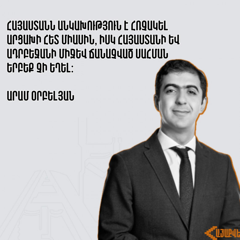 Հայաստանն անկախություն է հռչակել Արցախի հետ միասին, իսկ Հայաստանի և Ադրբեջանի միջև ճանաչված սահման երբեք չի եղել. Արամ Օրբելյան