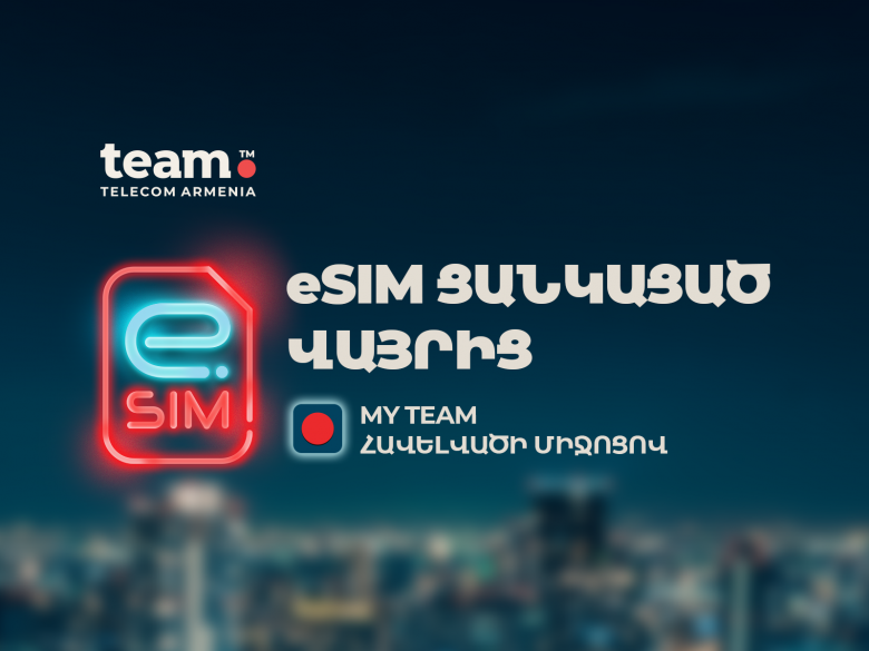 ՀասարակությունTeam Telecom Armenia-ի հեռախոսահամար գնելու համար այլևս պարտադիր չէ լինել Հայաստանում կամ մոտենալ մասնաճյուղ։ Team-ը, առաջինը Հայաստանում, թվային լուծումների շնորհիվ բացառիկ հնարավորություն է տալիս My Team հավելվածի միջոցով գնել eSIM քարտ և ակտիվացնել այն աշխարհի ցանկացած կետից։