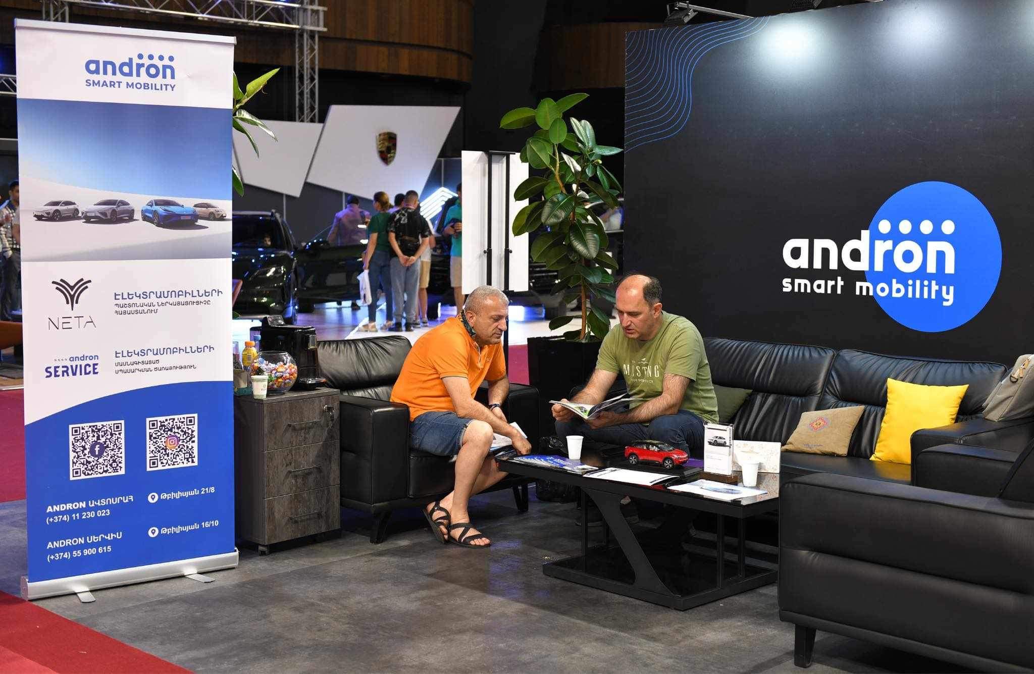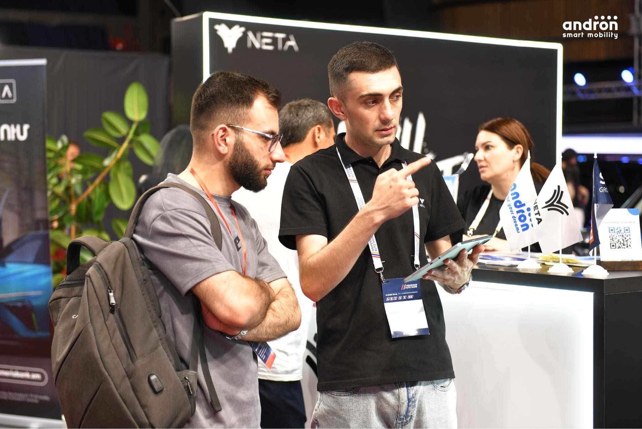 Shtigen Group-ի մաս կազմող Andron ընկերության տաղավարում հավաքված հյուրերն ու այցելուները երեք օր շարունակ ծանոթացան Neta հանրահայտ բրենդի տարբեր գնային սեգմենտների էլեկտրամոբիլներին, ինչպես նաև պարզեցին, թե ինչպես կարող են իրենց բենզինային մեքենան փոխանակել էլեկտրամոբիլի հետ։