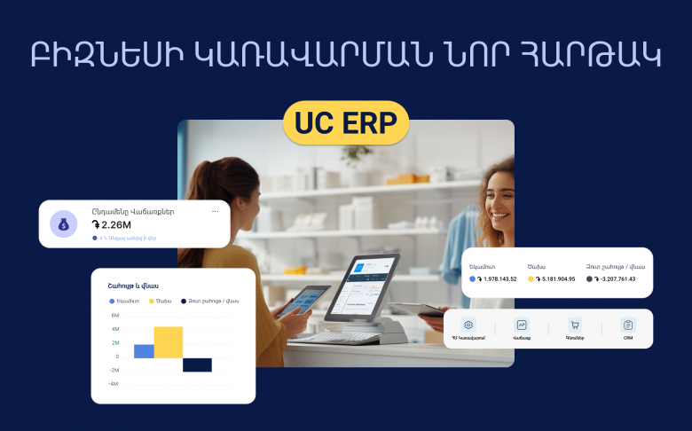 ՀասարակությունUcraft-ը ներկայացնում է նոր լուծում բիզնեսի համար՝ UC ERP հարթակը։ Այն ձեռնարկությունների ռեսուրսների կառավարման միասնական հարթակ է, որը թույլ է տալիս հետևել բոլոր բիզնես գործընթացներին մեկ տեղում. կազմակերպել մեծածախ և մանրածախ վաճառք, ձևավորել և հետևել գնումների շղթային, դուրս գրել հաշիվ-ապրանքագրեր, կառավարել հաճախորդների տվյալները, հաշվապահական և ֆինանսական գործարքները, հետևել նախագծերի կատարմանը և շատ ավելին։