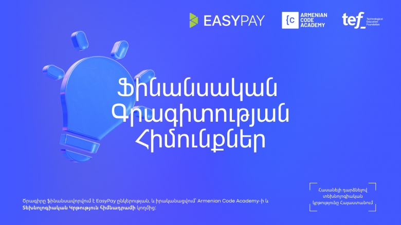 EasyPay ընկերության կողմից ֆինանսավորվող այս առցանց դասընթացը ֆինանսական հմտությունների զարգացման համապարփակ վերապատրաստման ծրագիր է։ Ծրագրի նպատակն է մասնակիցներին զինել ֆինանսական գրագիտության անհրաժեշտ գիտելիքներով, որոնք կօգնեն գրագետ կառավարել ֆինանսական միջոցները, պատկերացում կազմել ֆինանսական համակարգից, ինչպես նաև օգտվել էլեկտրոնային վճարային համակարգերից։