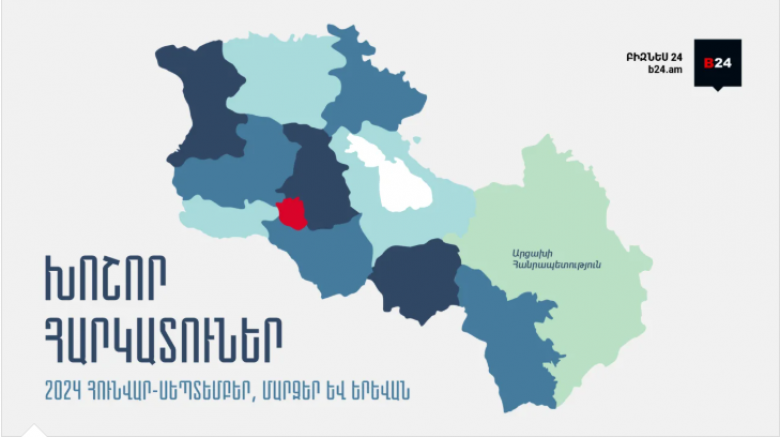 ՀՀ 1,000 խոշոր հարկ վճարողներից բացարձակ մեծամասնությունը գրանցված է Երևանում։ Խոսքը գնում է 821 ընկերության մասին կամ՝ հազարյակի ընկերությունների 82.1%։ 2023թ.-ի համադրելի ցուցանիշի համեմատ Երևանյան ընկերությունների թիվն աճել է 16-ով։ Երևանյան ընկերությունների կողմից մուծվել է 1.076 տրլն ՀՀ դրամ կամ 1,000 խոշոր հարկ վճարողների մուծած հարկերի 81.3%։ 2023թ.-ի համադրելի ցուցանիշի համեմատ արձանագրվել է մուծված հարկերի ծավալի աճ 3.6%-ով կամ 37.5 մլրդ ՀՀ դրամով։ Երևանյան ընկերությունների առաջատար եռյակն այսպիսինն է՝ «Մոբայլ Սենթր Արթ», «Գրանդ Տոբակո», «Գազպրոմ Արմենիա»։ Ի տարբերություն 2023-ի նույն ժամանակահատվածի «Գազպրոմ Արմենիան» առաջատարի իր դիրքը զիջել է «Մոբայլ Սենթր Արթ» ընկերության և նահանջել 3-րդ հորիզոնական։