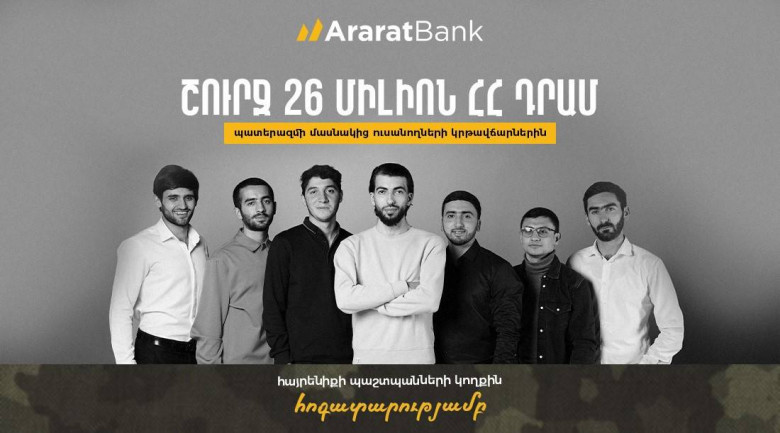 Հասարակություն2022 թվականից սկսած՝ ԱրարատԲանկը միացավ հայրենիքի պաշտպանների՝ պատերազմի մասնակից ուսանողների կրթության ապահովման նախաձեռնությանը։