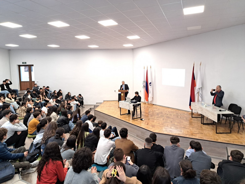 Արդյունաբերության փորձագետ, (Կանադա) Թերենս (Սրապ) Օրթսլանը «Հանքարդյունաբերության և մետաղների սկզբունքները. անցյալ, ներկա և ապագա» թեմայով դասախոսության ընթացքում խոսեց աշխարհում գոյություն ունեցող հանքերի, դրանց տեսակների մասին և ներկայացրեց ոլորտի հետագա զարգացման տեսլականը։
