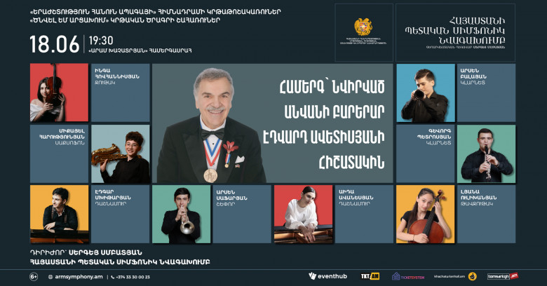 Հունիսի 18-ին Արամ Խաչատրյան համերգասրահում տեղի կունենա անվանի բարերար Էդվարդ Ավետիսյանի հիշատակին նվիրված համերգ։ Երեկոյի ընթացքում Հայաստանի պետական սիմֆոնիկ նվագախմբի հետ ելույթ կունենան «Երաժշտություն հանուն ապագայի» հիմնադրամի կրթաթոշակառուները և «Ծնվել եմ Արցախում» կրթական ծրագրի շաhառուները։