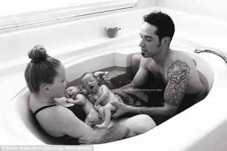 Իսկ երեխաների լույս աշխարհ գալուց հետո Ռոբինը լուսանկարել է, թե ինչպես է երջանիկ մայրիկն ու նորածին փոքրիկները խոտաբույսերով լոգանք ընդունում միասին։