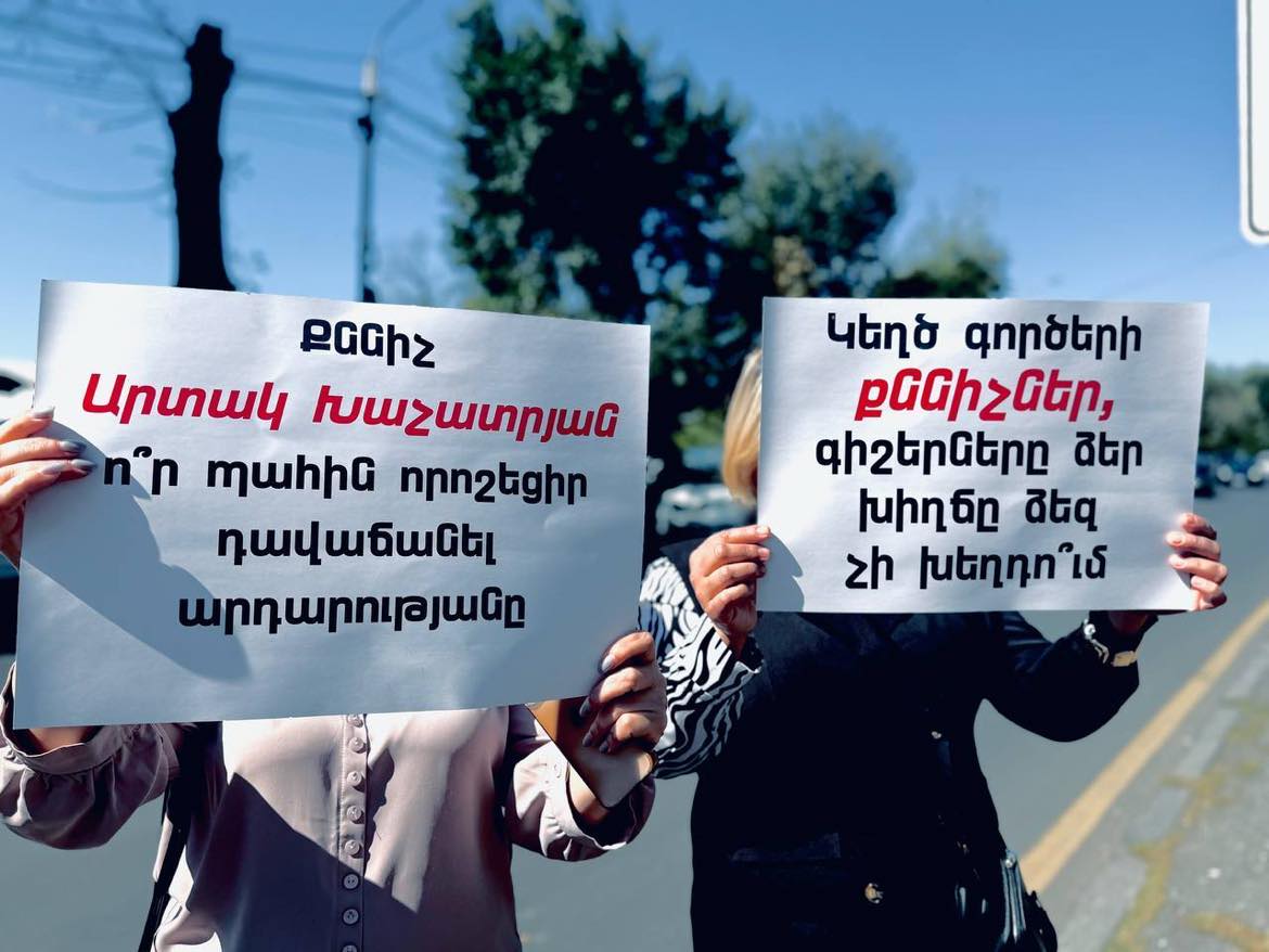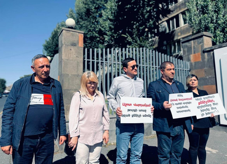 Այսօր «Համահայկական ճակատ» շարժման և կուսակցության անդամները ՀՀ զինվորական քննչական վարչության դիմաց բողոքի ակցիա իրականացրեցին և հնչեցրեցին գործ կարող քննիչների անունները, նրանք են` Արթուր Խաչատրյան, Արտակ Խաչատրյան, Աշոտ Վարդանյան: